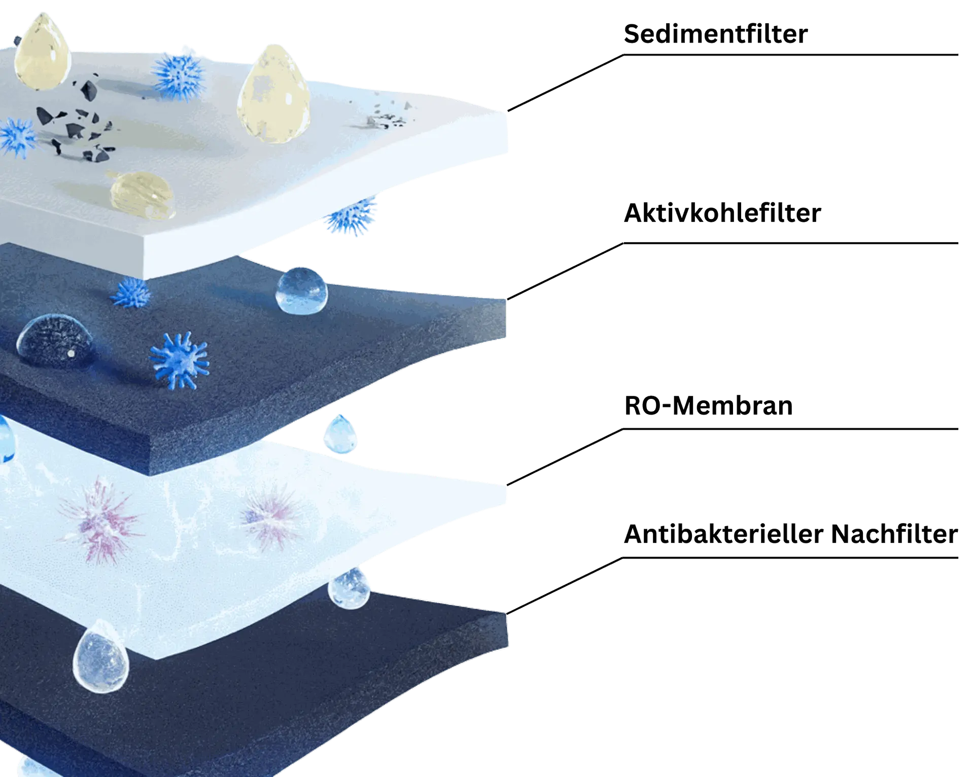 Sediment-, Aktivkohle-, Membran- und Nachfilter in einem Element – maximal kompakt, maximal effizient.
