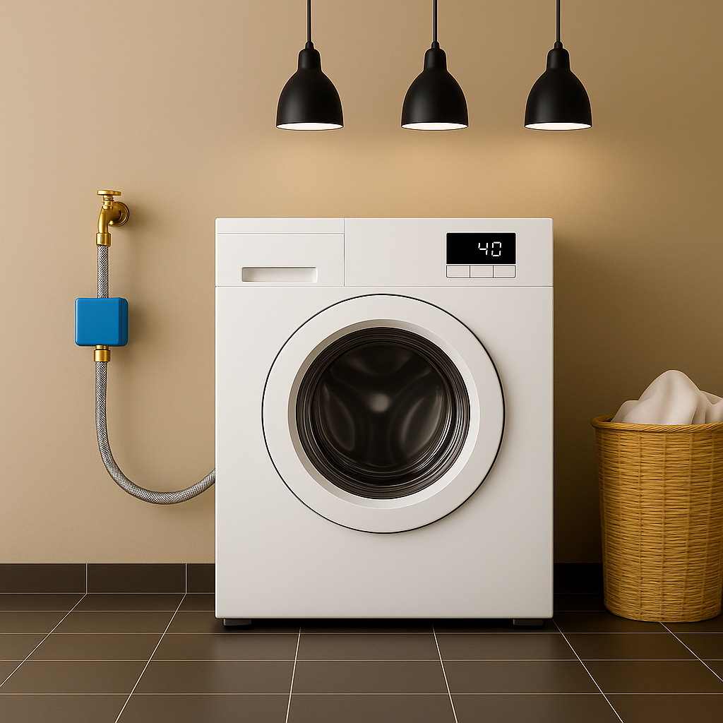 Das System arbeitet vollautomatisch, benötigt lediglich eine 5V-Stromversorgung und bietet zuverlässigen Schutz genau dort, wo Wasser austreten könnte – zum Beispiel im Hauswirtschaftsraum, unter Wasch- oder Spülmaschinen, oder an Ihrer Enthärtungsanlage.