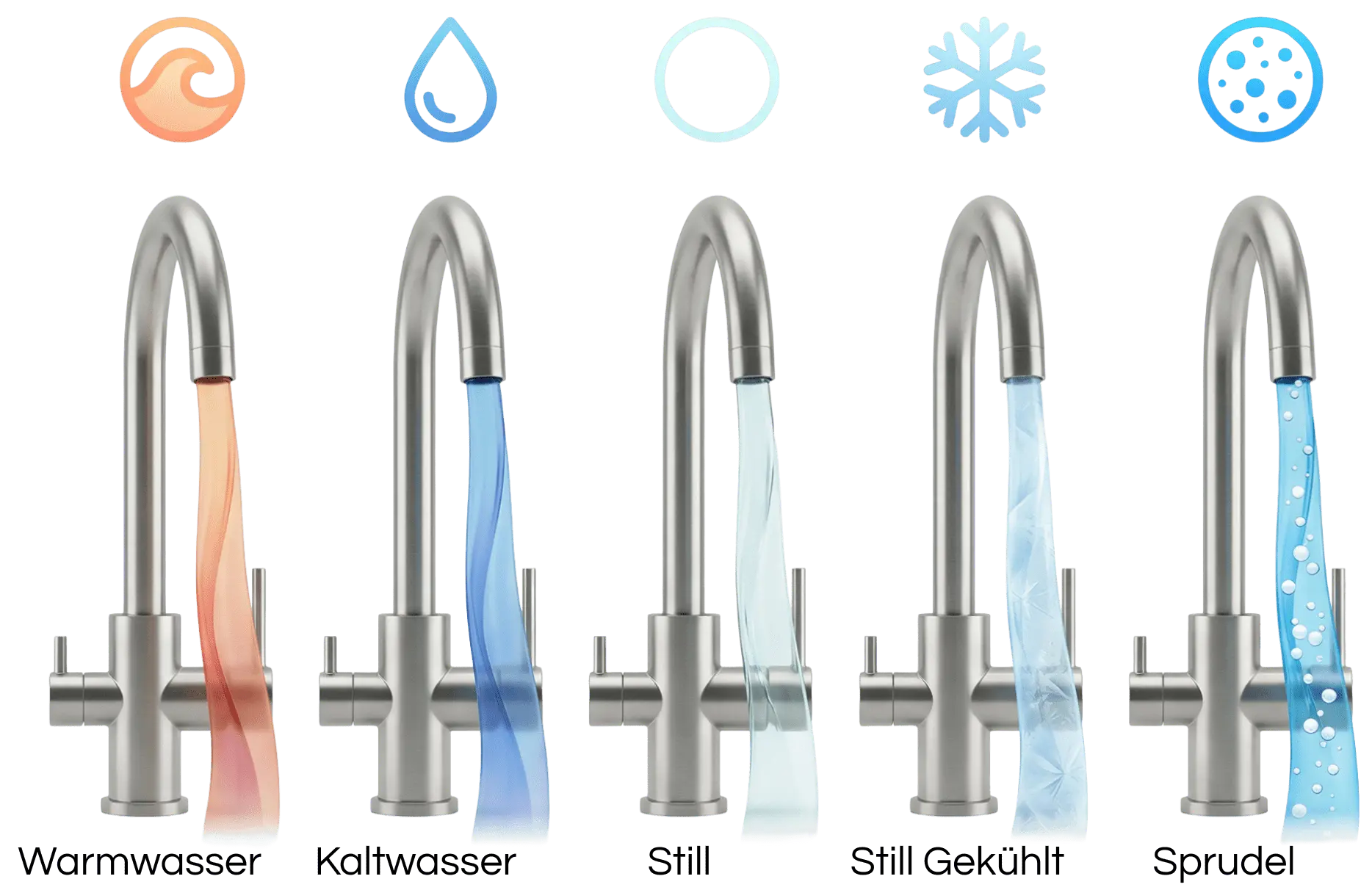 Fünf Wassersorten aus einer Armatur
