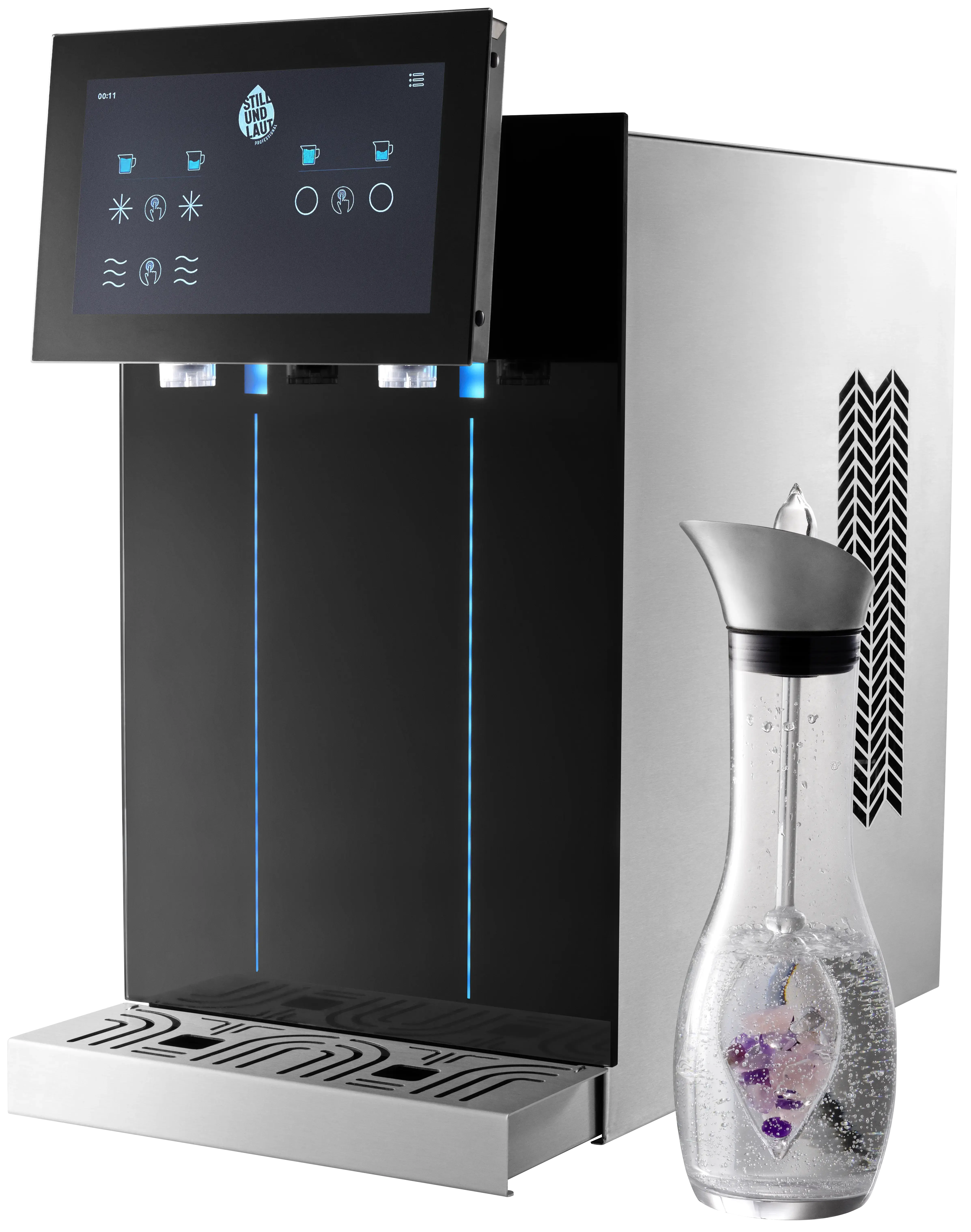 Mit einer Ausgabekapazität für bis zu 150 Personen kombiniert die STILLUNDLAUT QUANTUM 150 kraftvolle Kühltechnologie mit feinperliger Karbonisierung und patentierter Hygienesicherung – als leistungsstarke Auftischlösung für professionelle Ansprüche.