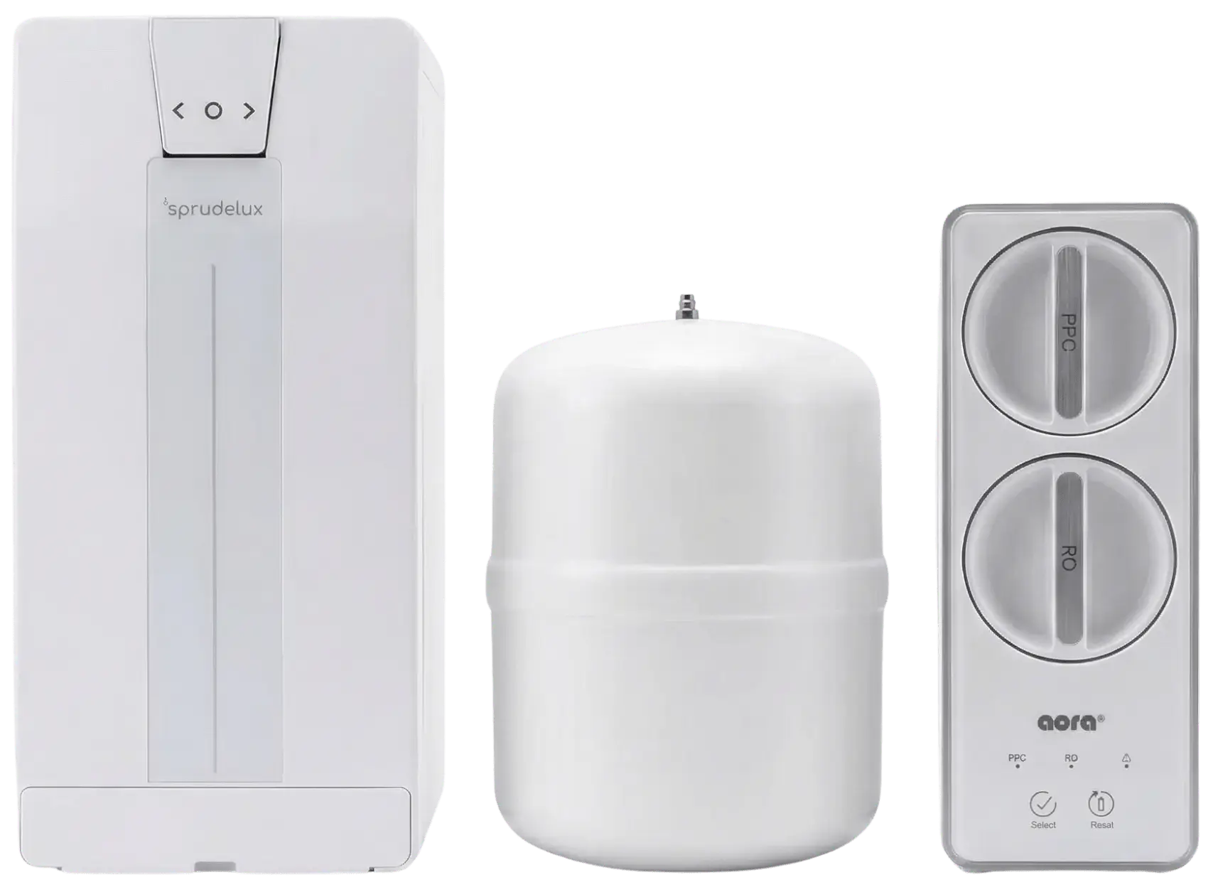 Die POWER SODA OSMOSE Untertischlösung verbindet maximale Sprudelstärke mit reinem Osmosewasser aus externer Filtration. Die AORA GT600 übernimmt Vorfilterung und Osmose, der Tank sorgt für konstante Verfügbarkeit und die Power Soda liefert stilles, kaltes oder sprudelndes Premiumwasser direkt aus Ihrer Armatur.