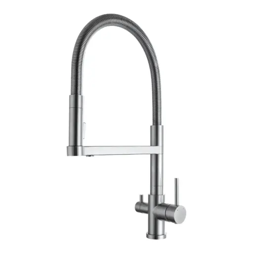 5-Wege-Wasserhahn ALBA aus 304-Edelstahl | ausziehbare Brause | kompatibel mit untertisch Wassersprudlern | deutsche Qualitätsmarke